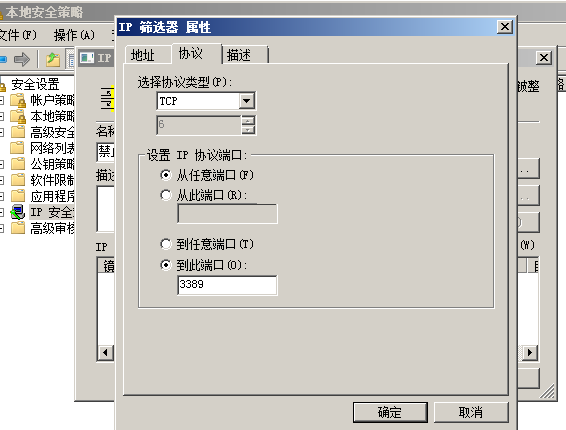 然后在添加一個禁止通過3389遠程連接的ip規(guī)則。