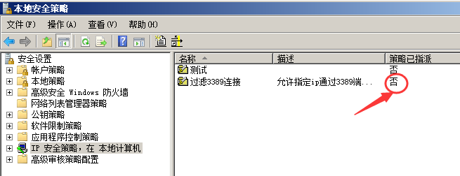 無法遠程連接到服務(wù)端,我們再把服務(wù)端ip安全策略這是成未分配,再測試一下客戶端是否能遠程到服務(wù)端。