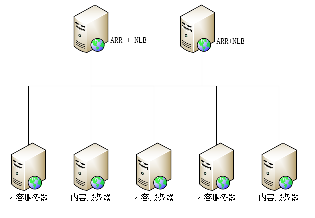 上面示例,如何搭建高可用。但是內容服務器依然受限于,ARR服務器轉化能力。如何突破受限于一臺服務器的轉化能力轉為多臺ARR服務器共同處理這個轉化,則就能實現內容服務器的可伸縮性。