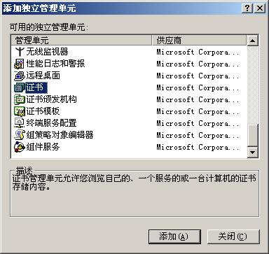 3.點(diǎn)擊“添加”,選擇“證書”,點(diǎn)擊“添加”: