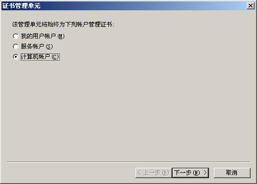 4.選擇“計(jì)算機(jī)帳戶”,點(diǎn)擊“下一步”: