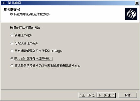13.在列表中選中剛才導(dǎo)入的證書,點(diǎn)擊“下一步”,再點(diǎn)擊“下一步”,完成證書的分配。則IIS 5的證書安裝完畢。