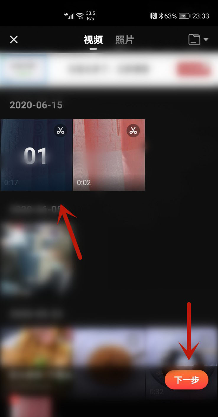 2、然后選擇一個視頻,點擊【下一步】按鈕。