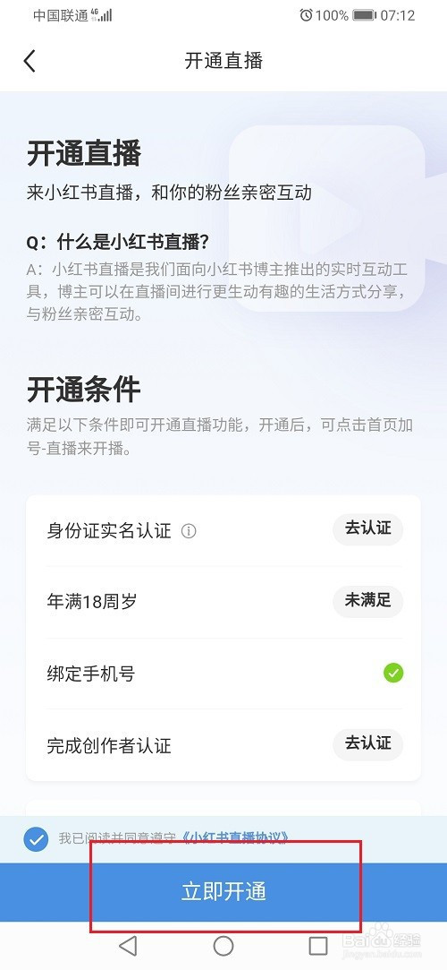 第四步進去之后,滿足條件之后,可以點擊立即開通,如下圖所示:
