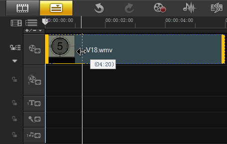 二、選擇視頻軌中的視頻素材,將鼠標(biāo)移至視頻素材的起始位置,當(dāng)鼠標(biāo)呈雙向箭頭形狀時(shí),單擊鼠標(biāo)左鍵并向右拖動。