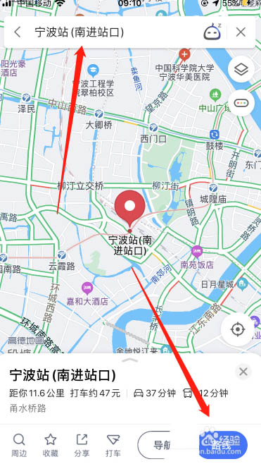 3、我們可以看到現(xiàn)在出發(fā)需要多少時間,屏幕往下拉,有一個未來用時