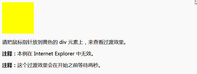 <p>請把鼠標指針放到黃色的 div 元素上,來查看過渡效果。</p>